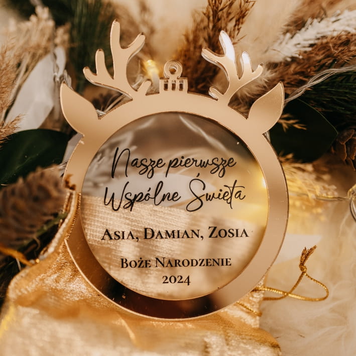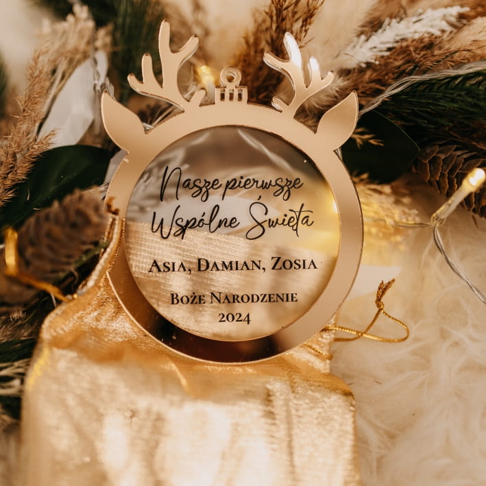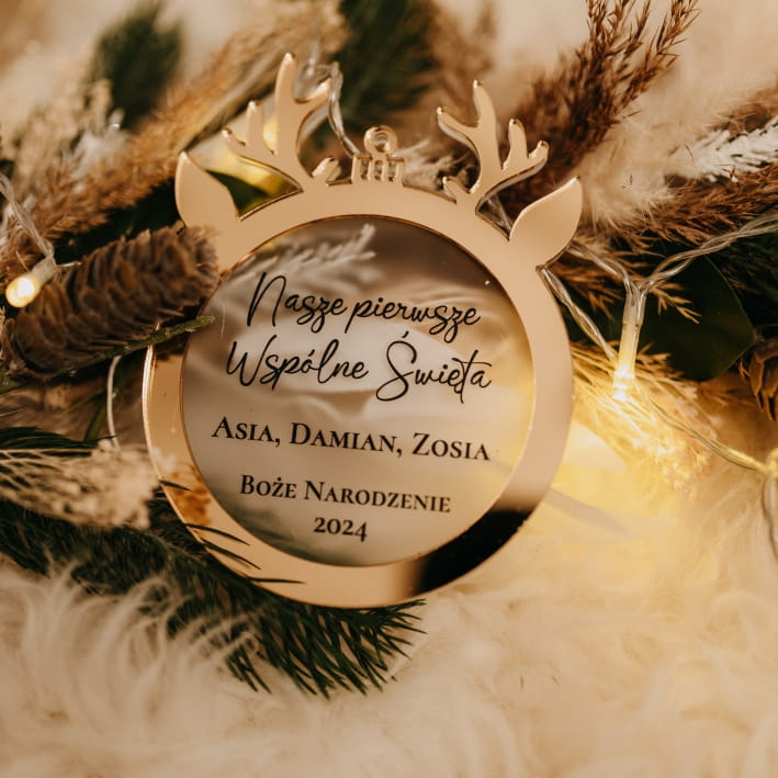 Dodaj swojej choince wyjątkowego charakteru dzięki lustrzanej bombce z Waszymi imionami! To nie tylko świąteczna dekoracja, ale także oryginalna pamiątka pierwszych świąt z nowym członkiem rodziny.