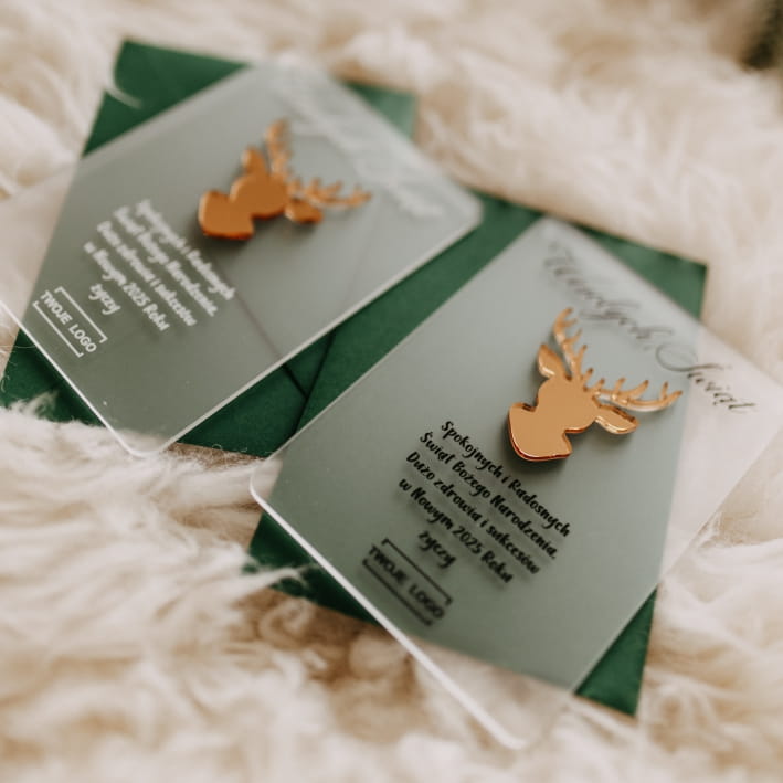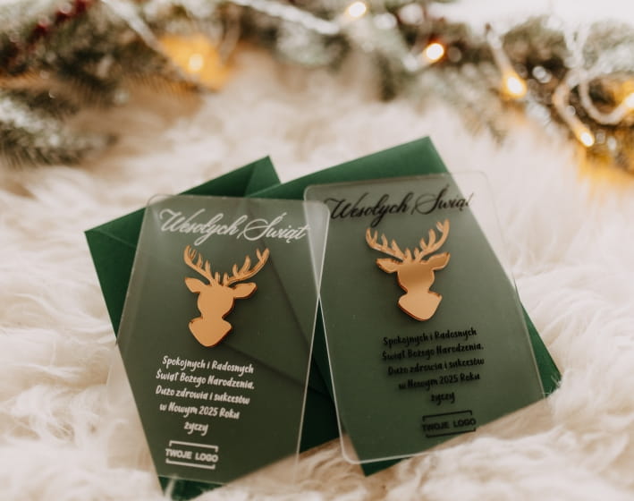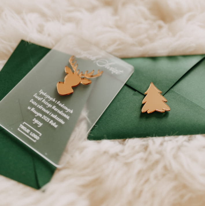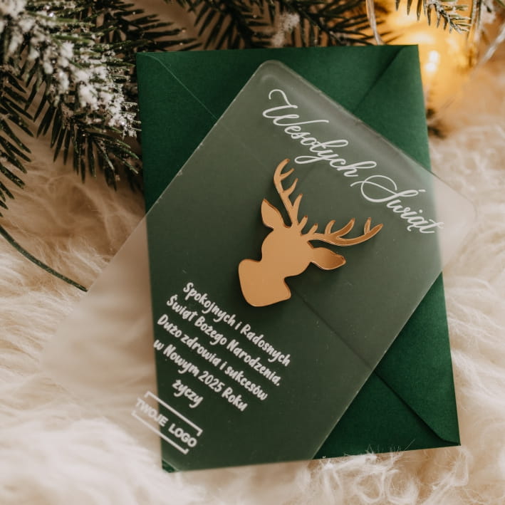 Nasza akrylowa kartka świąteczna to połączenie nowoczesnego designu i personalizacji, które idealnie wpasuje się w świąteczny klimat Twojej firmy.