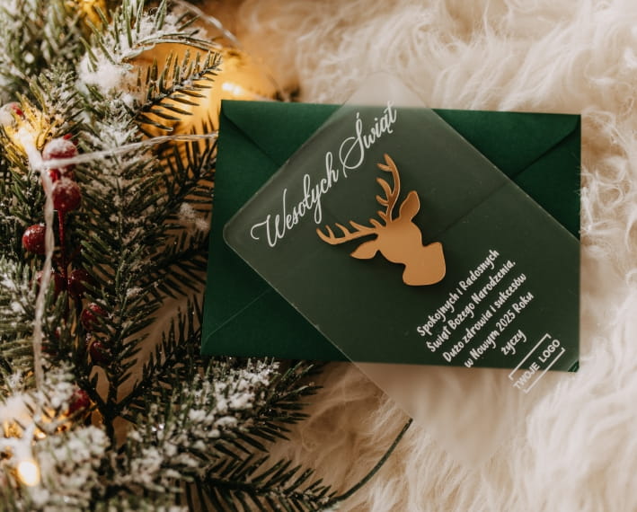 Skontaktuj się z nami, aby wgrać swoje życzenia i logo. Święta to czas, by zrobić wyjątkowe wrażenie!