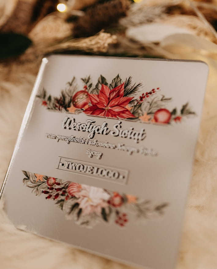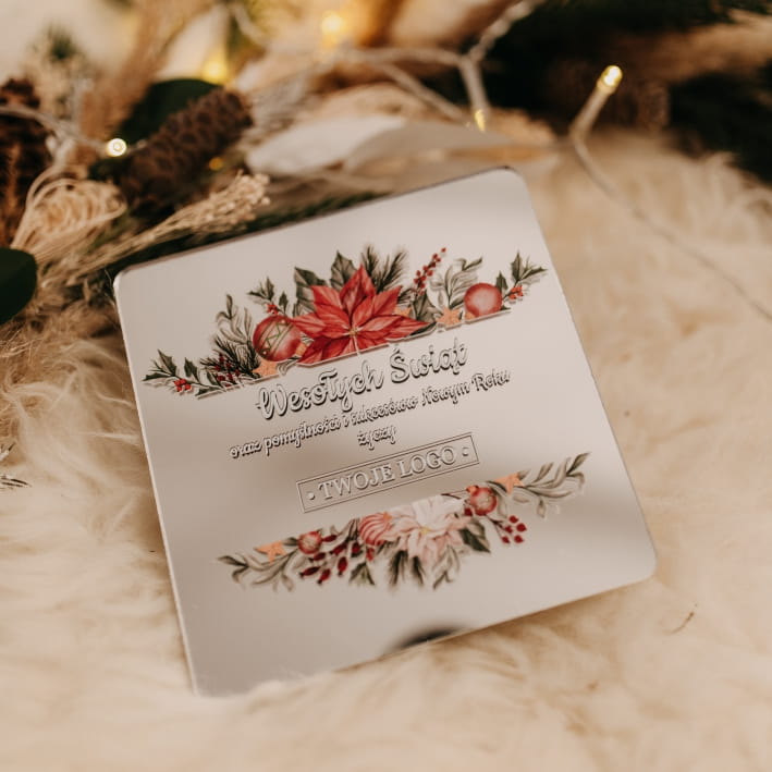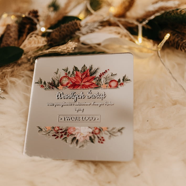 Skontaktuj się z nami, aby wgrać swoje życzenia i logo. Święta to czas, by zrobić wyjątkowe wrażenie!