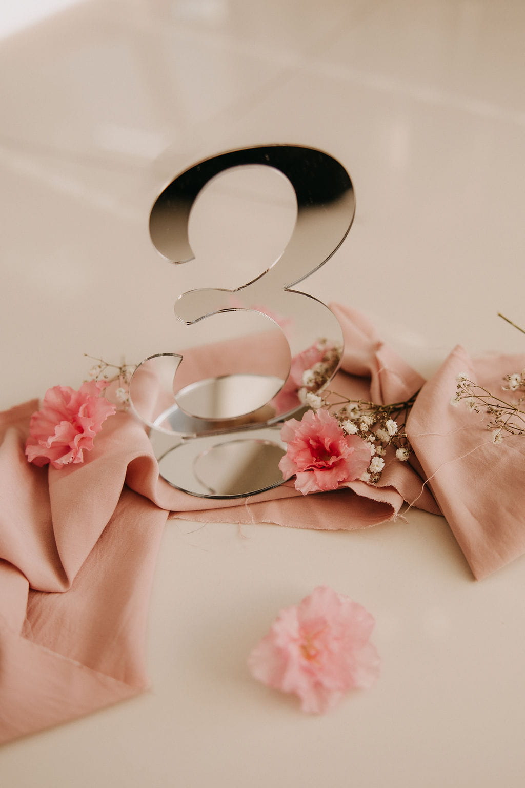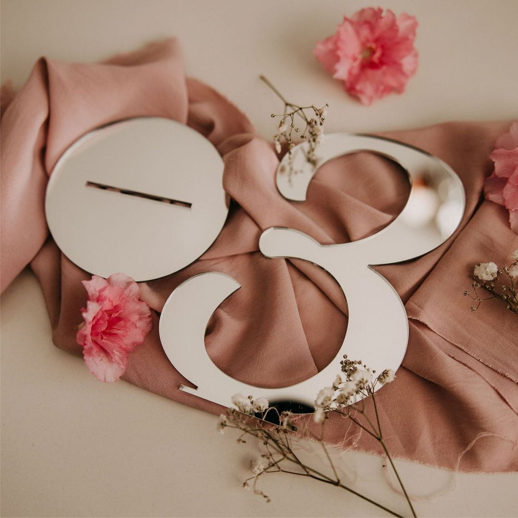 Dodaj wyjątkowy blask swojej weselnej aranżacji dzięki lustrzanym numerkom na stoły! Wykonane z wysokiej jakości lustrzanej płyty w odcieniach złota, srebra lub różowego złota, stanowią idealne połączenie nowoczesnego designu i klasycznej elegancji.