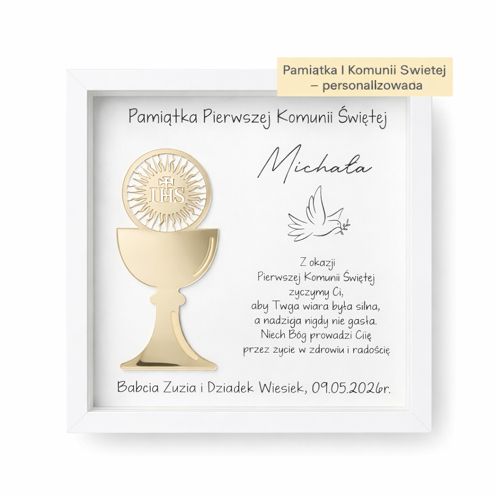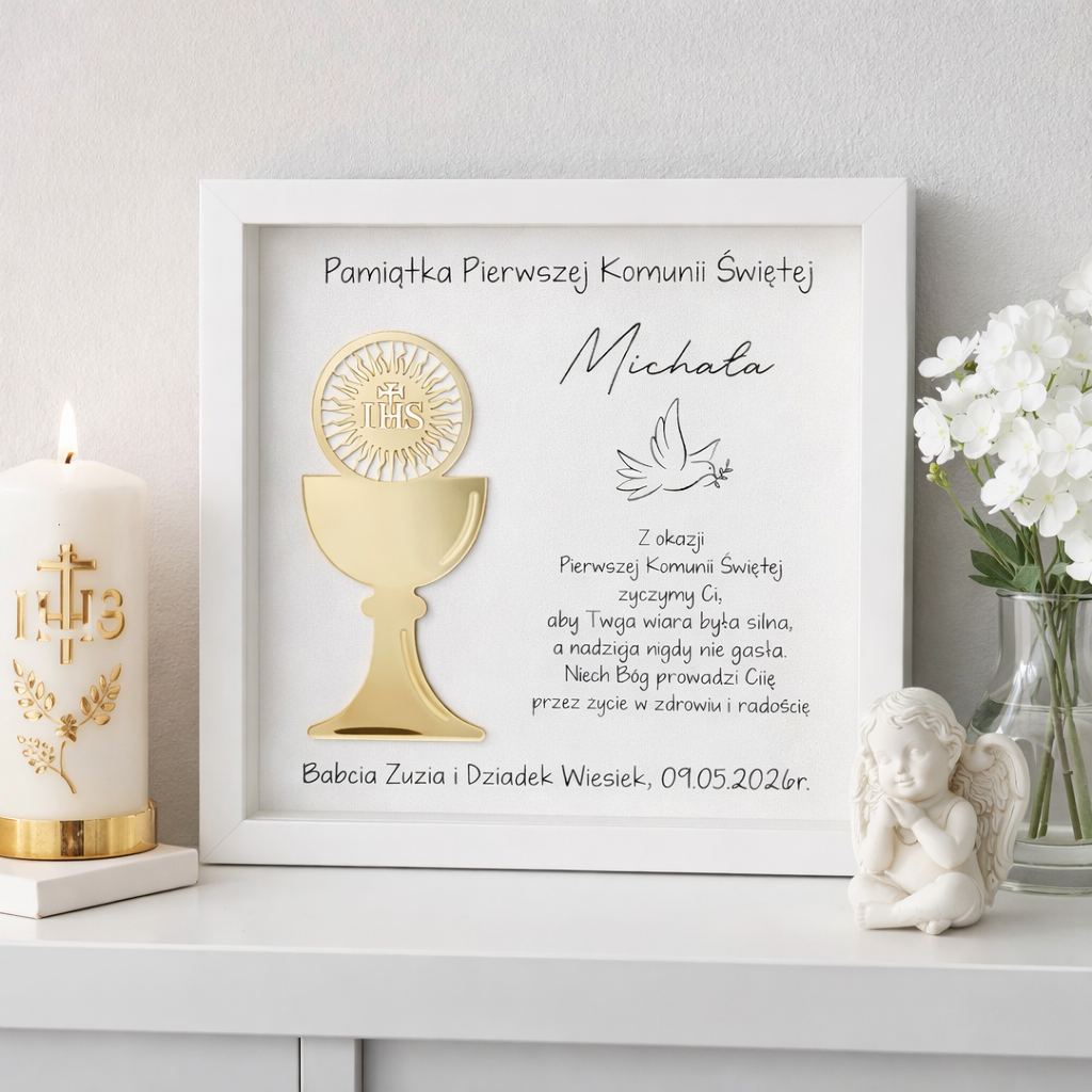 Personalizowana Pamiątka Pierwszej Komunii Świętej w Ramce