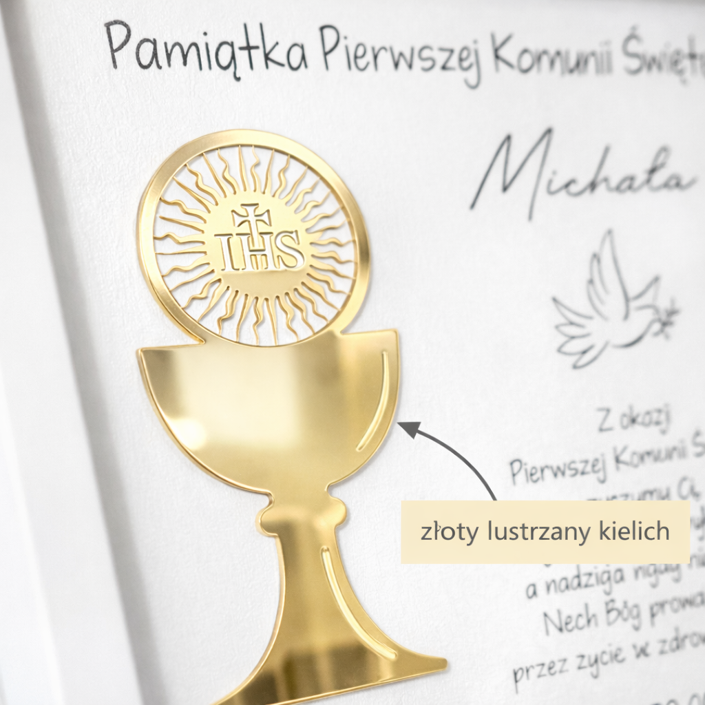 Personalizowana Pamiątka Pierwszej Komunii Świętej - Lustrzany Kielich