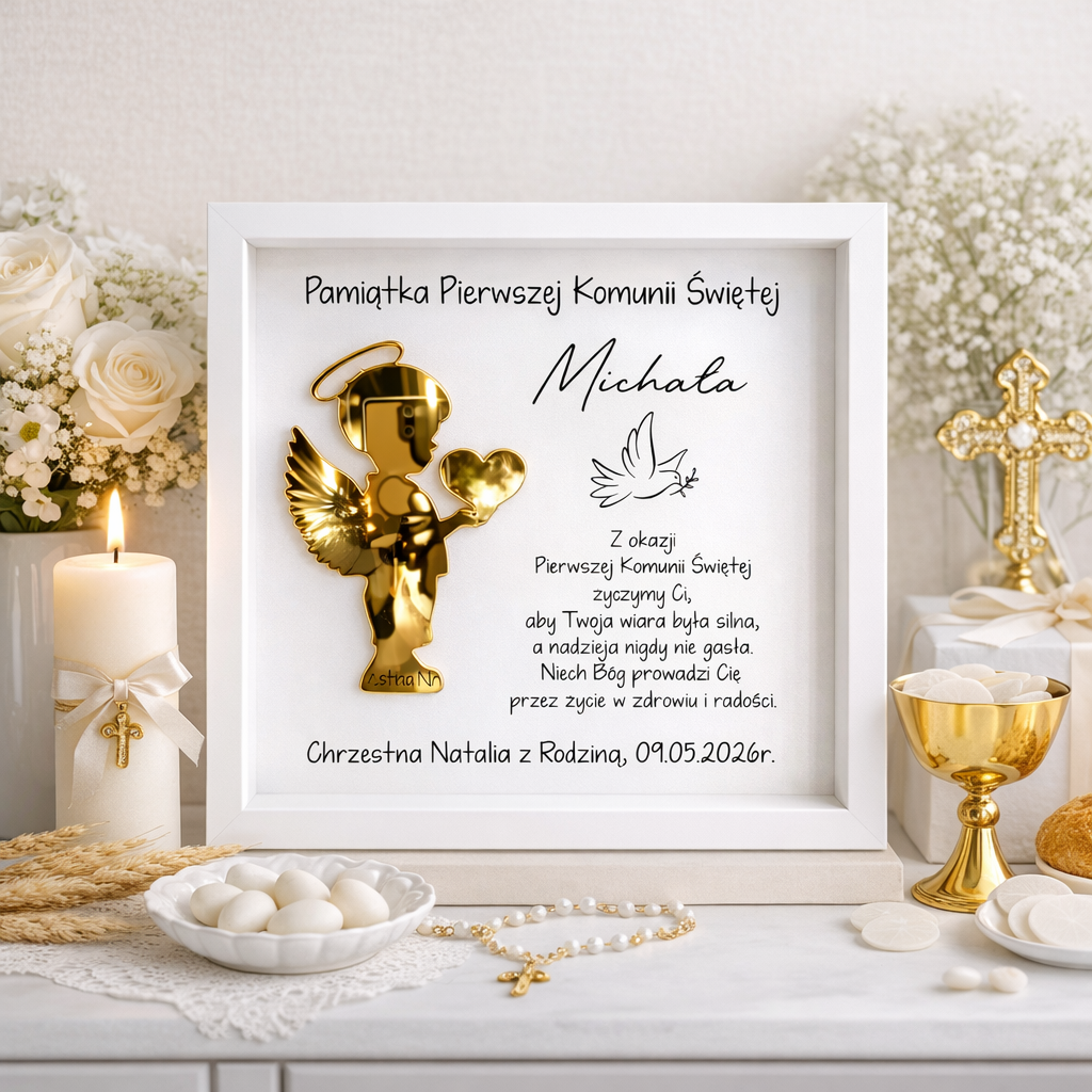 Personalizowana Pamiątka Pierwszej Komunii Świętej w Ramce