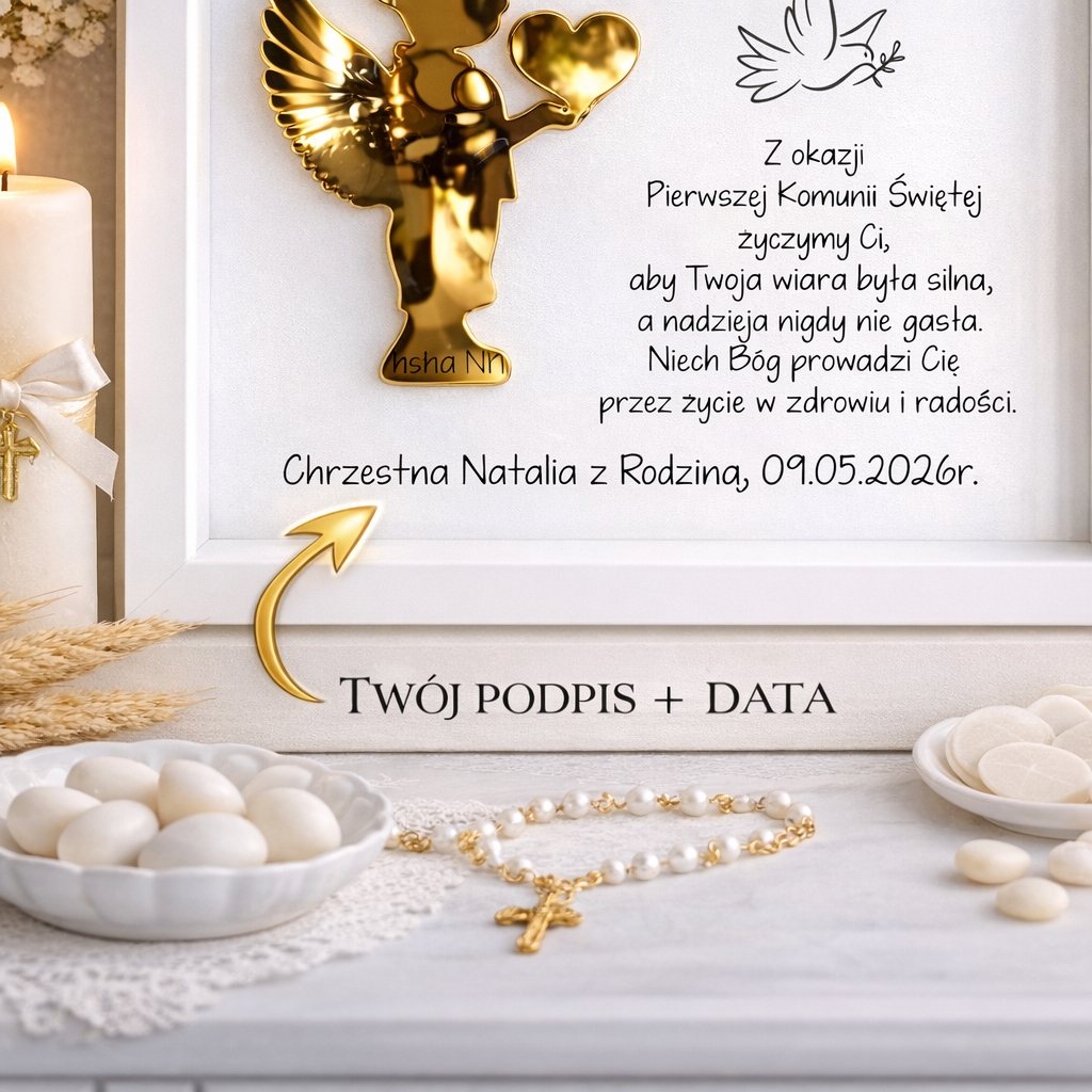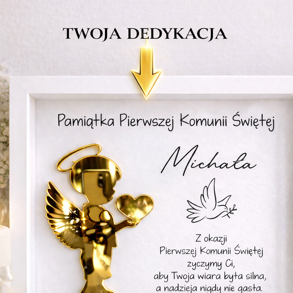 Personalizowana Pamiątka Pierwszej Komunii Świętej - Złoty Aniołek