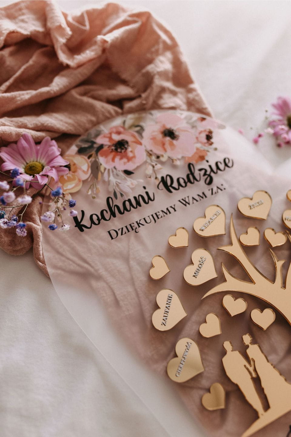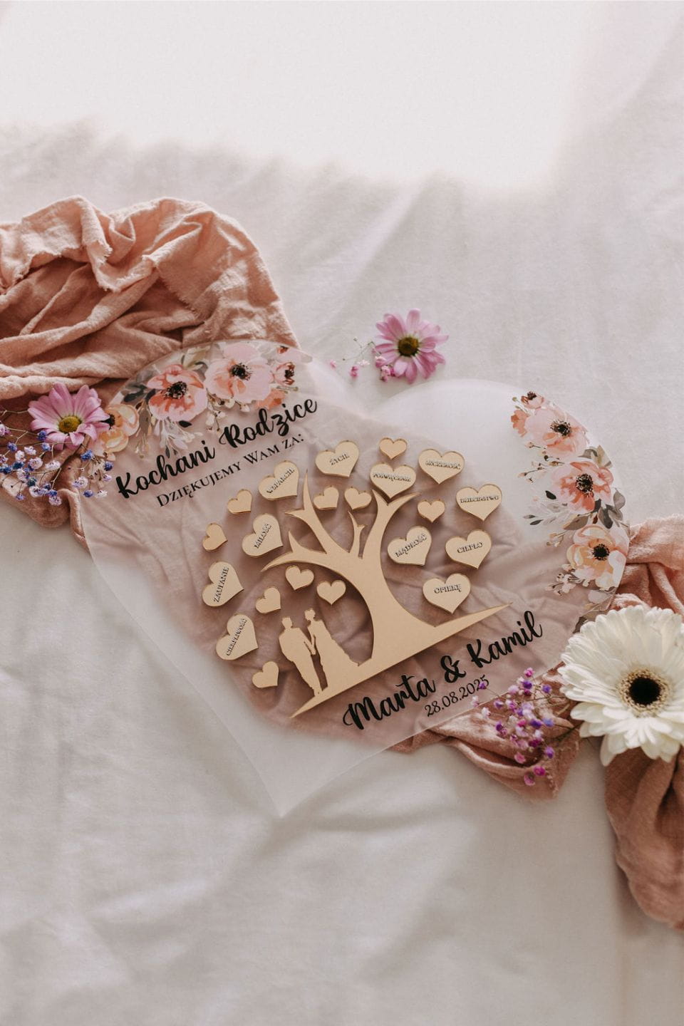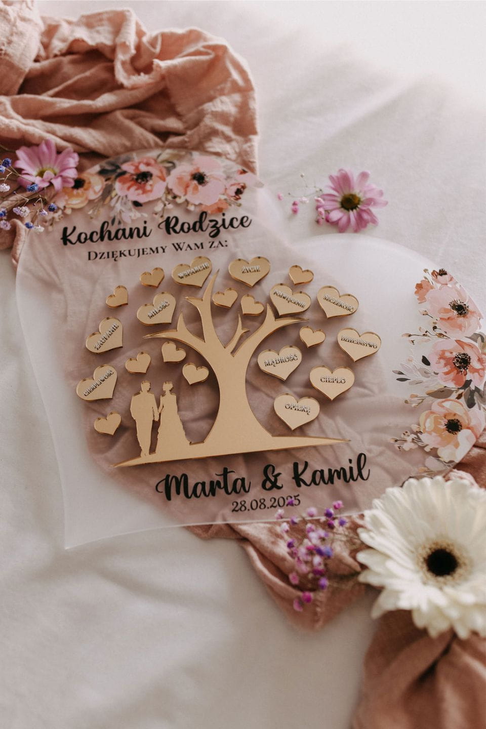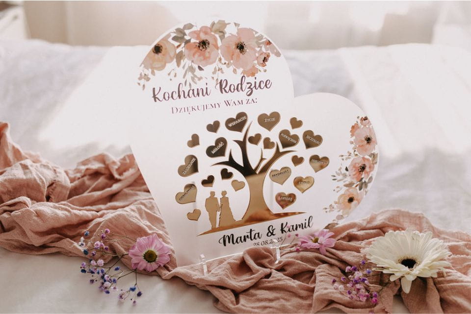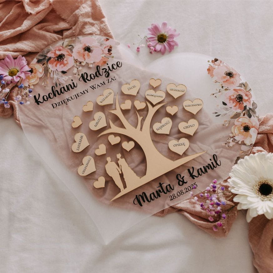 Podziękuj rodzicom w niezwykle elegancki i wzruszający sposób! Nasze ślubne podziękowanie w formie akrylowego serca to wyjątkowa pamiątka, która na zawsze pozostanie symbolem Waszej wdzięczności i miłości.