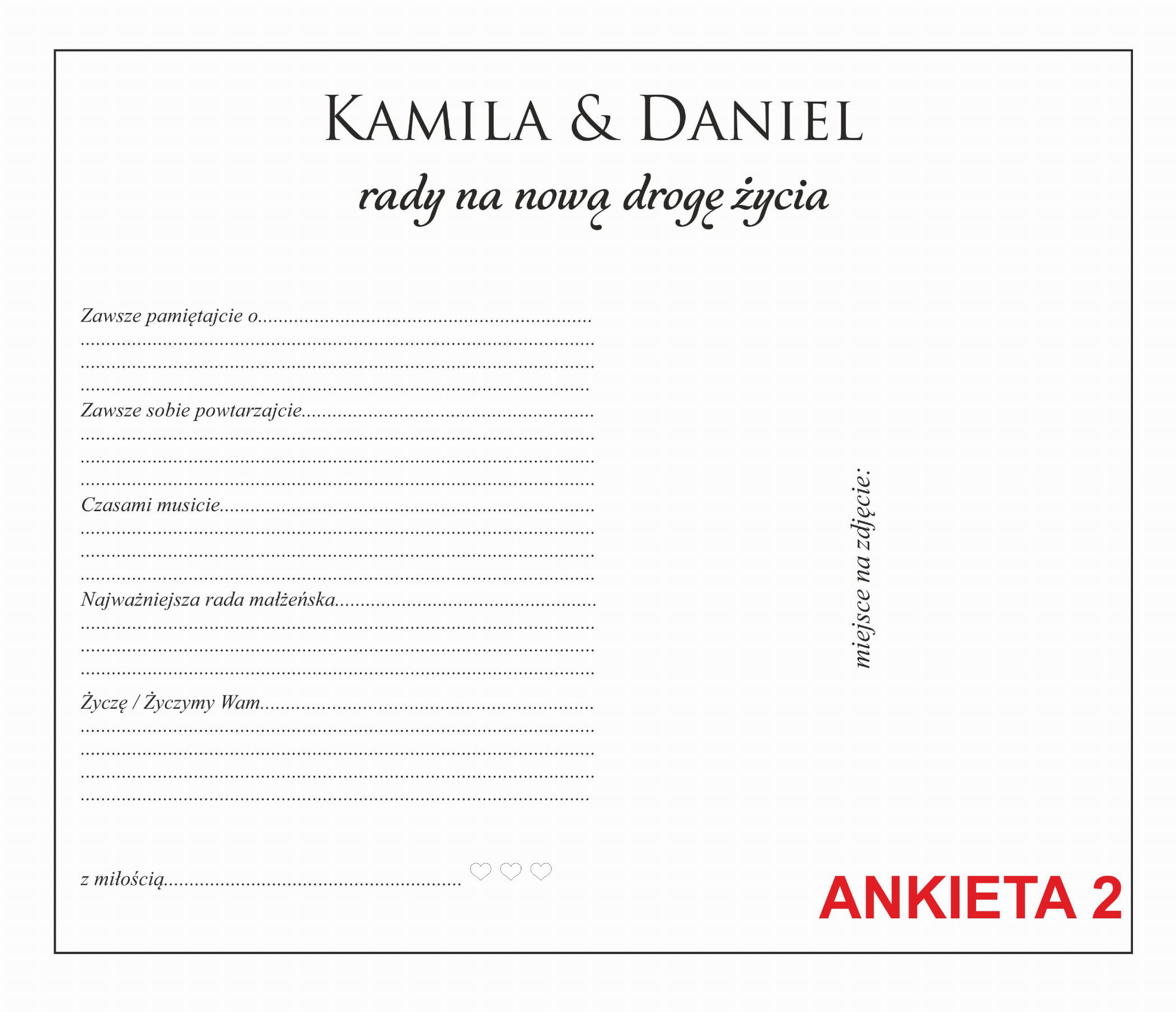 Opcją dodatkową jest umieszczenie ANKIET ŚLUBNYCH - wzory znajdziecie na zdjęciach produktu.